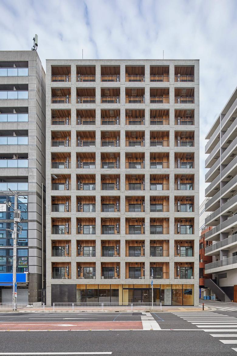 日本のマンションの戸数は令和元年現在で665万戸に及び、今回のプロジェクトのように、100戸以上の規模のマンションが建設されると、その外観が街に与える影響は大きく、街の景観は一変する。また分譲マンションの場合、その外観には購入者の資産価値といった側面もあり、ファサードのデザインは多義的な意味を背負わざるを得ない。このプロジェクトでは、バルコニーを覆うグリッド状の開口、レンガ目地のコンクリート外壁、木目調塗装など、コンクリートの多義的な装いで、いかに街の歴史、景観、都市の賑わい、マンションの販売者と購入者それぞれにとっての価値、そしてメンテナンスなどを踏まえた建物の性能を引き受けて、新たな表現を提案できたのではないかと考えている。
