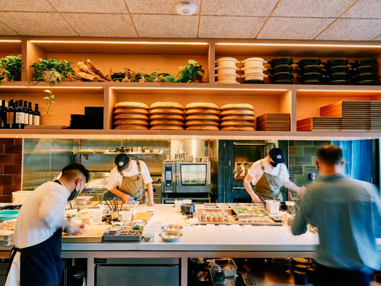 Inspired by Snow Peak’s effect of bringing people together around fire, the ground floor features a restaurant and bar called, Takibi. Takibi has indoor dining as well as seating in its fully covered outdoor patio space. The 1,000-square-foot patio includes an open, multi-purpose space, perfect for gathering around fire pits with camp chairs.