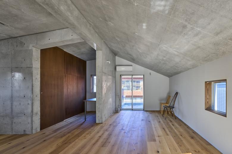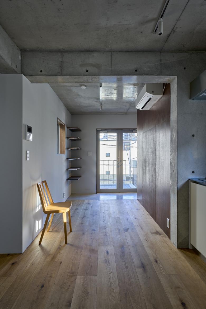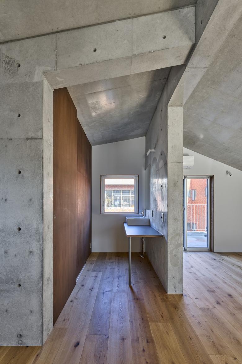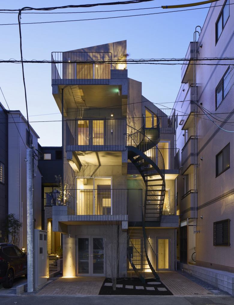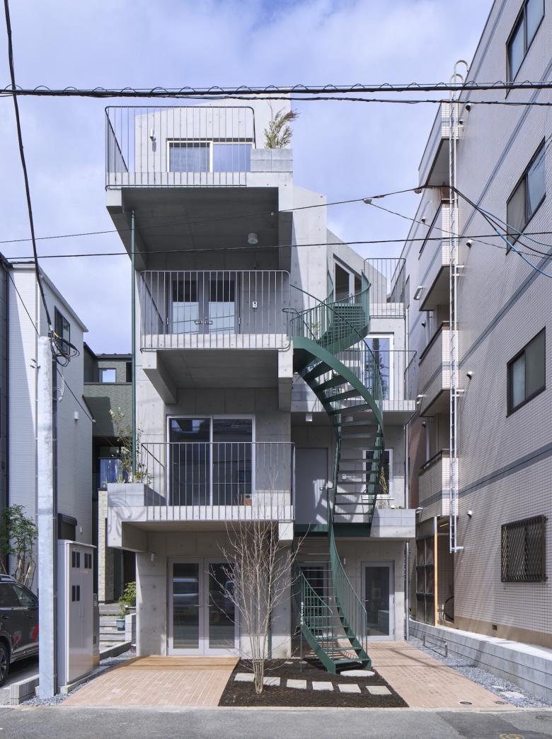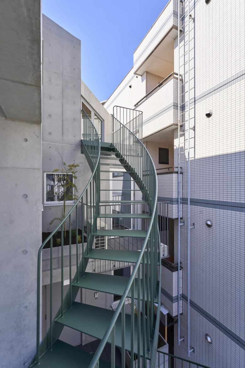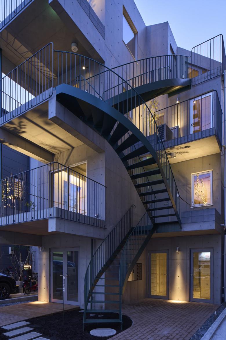 2階から4階にはそれぞれ1住戸づつのアクセスがあり(うち2階と3階の一部はオーナー住宅)、 全ての住戸は縫い目のような階段に直接つながったバルコニーを設け、 住宅に限らず一部を店舗やオフィスとして使うことも視野に入れた計画としています。