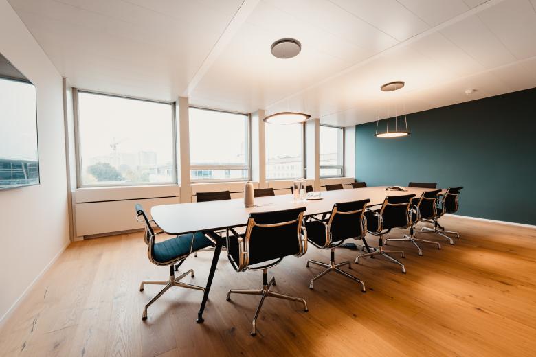 Eine dezente grüne Farbnuance ergänzt das Interieur und trägt zu einer modernen, zugleich ruhigen Raumwirkung bei. Das Konzept spiegelt unser Engagement wider, Arbeitsräume zu schaffen, die sowohl funktionalen als auch repräsentativen Ansprüchen gerecht werden.