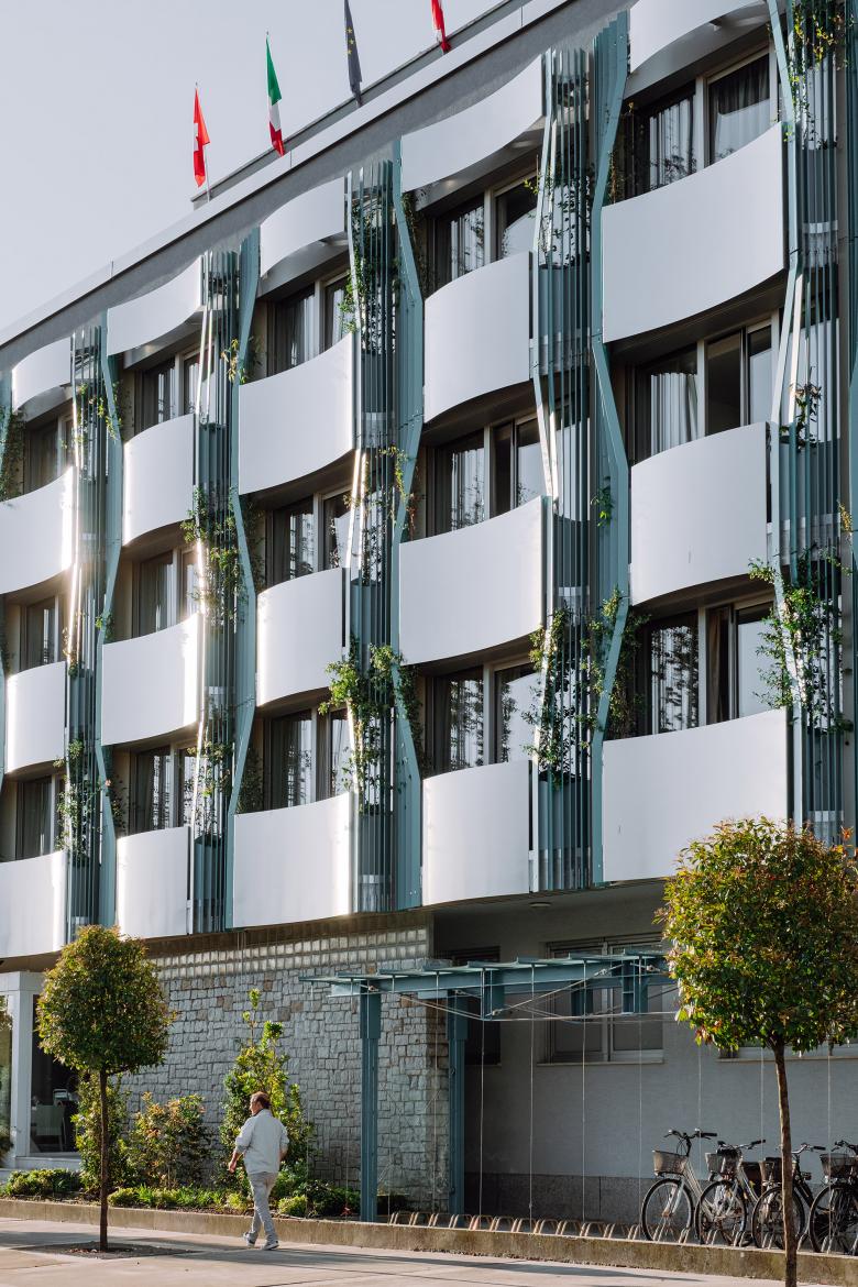 The street-facing facades of Hotel Savoy are being transformed into a rhythmic, green structure of curved steel. This new outer layer creates private outdoor spaces while filtering light, noise, and views. In doing so, the hotel becomes more deeply integrated into the urban context, and the architecture emerges as a breathing threshold between city, landscape, and hospitality.