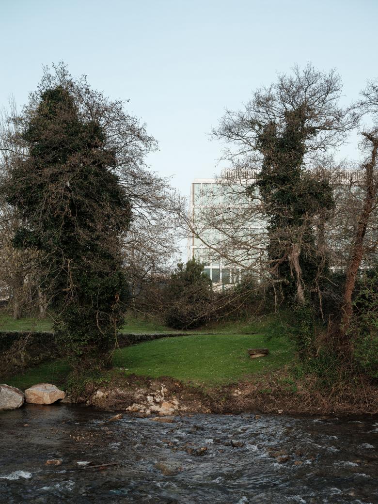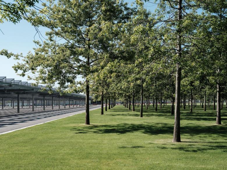 Additionally, a forest of 350 trees has been planted across 23,000 m² of landscaped areas, improving air quality, enhancing water infiltration, and offsetting CO₂ emissions. The development is further supported by a new cycle lane and a car park for over 600 vehicles with a photovoltaic canopy, promoting energy efficiency and integrating the complex seamlessly into its natural and urban surroundings.