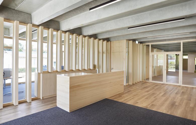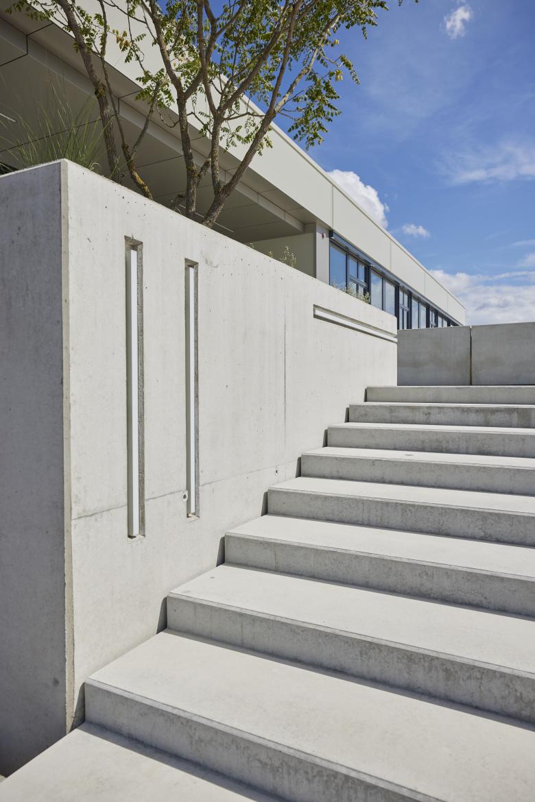 Das Gebäude beschränkt sich auf eindeutige Nutzungsfunktionen und bietet Aufgrund des gewählten Achsrasters ein Höchstmass an Flexibilität, in wandelbarer,