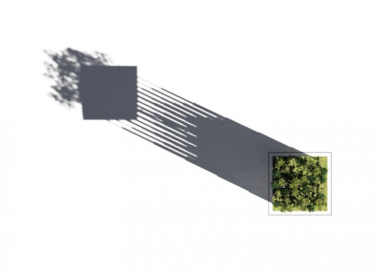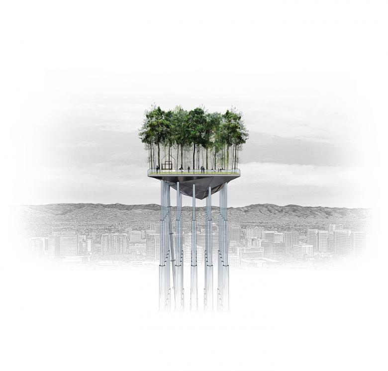 Our intervention (20x20 m square) situated in the northeastern portion of the site, prevents the disruption of relevant existing features, connects to the river trail, provides the necessary distance to observe the park and the city beyond through its ephemeral presence in the urban skyline.
