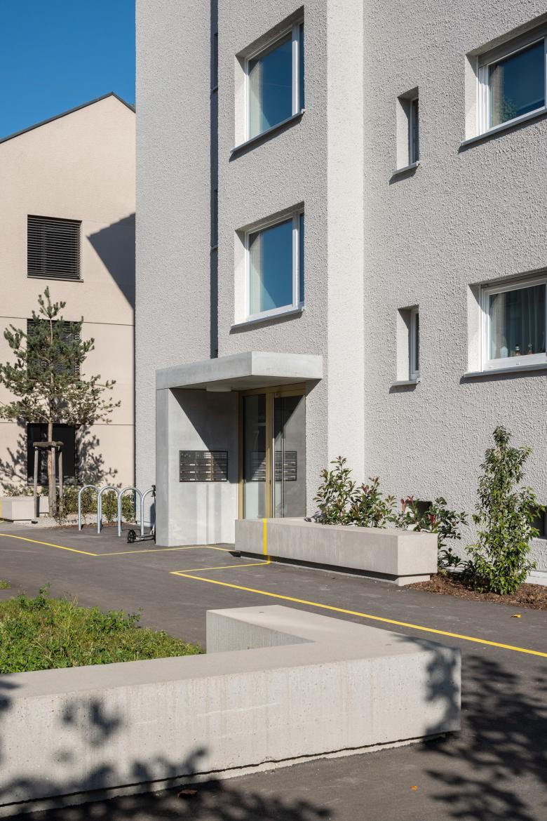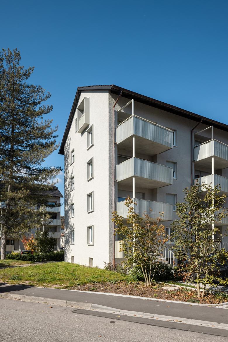 Im Auftrag der Wohnbau Lörrach realisierte das Büro TLB Architekten ab 2021 die umfassende Sanierung der drei Gebäude mit insgesamt 54 Wohneinheiten. Die Maßnahmen erfolgten im bewohnten Zustand der Gebäude. Alle Wohnungen erhielten neue Bäder und wurden an heutige Anforderungen angepasst. Darüber hinaus umfasste die Sanierung die Erneuerung der Gebäudehülle, von den Fassaden bis zu den Dächern, sowie den Austausch von Fenstern und Eingangselementen.