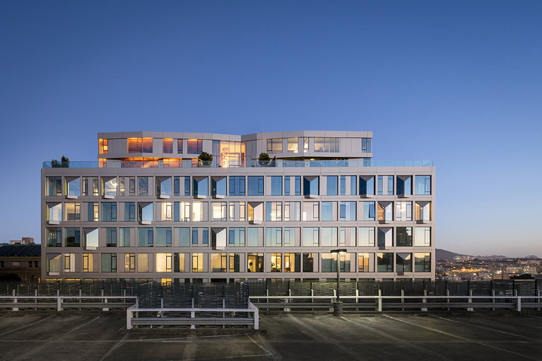 The Pacific involved the adaptive reuse of a 1967 dental teaching facility into a multifamily residential building, as well as the creation of ten new townhouses on an adjacent surface parking lot.