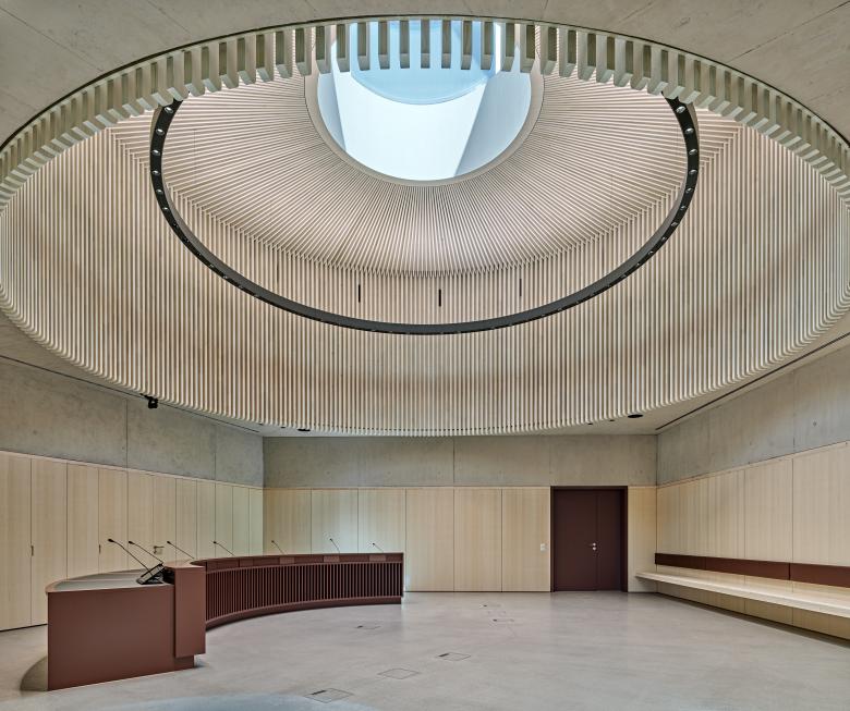 Das Bezirksgericht Lenzburg sowie der Polizeistützpunkt KAPO Lenzburg erhalten neue Standorte. Die KAPO bezog bereits 2020 an der Niederlenzerstrasse die umgebauten Räumlichkeiten. Der fünfeckige Gerichtsneubau kommt zwischen Tunnelweg und Malagarain zu liegen. Das Gebäude stärkt den Freiämterplatz. Ein Park schliesst am Neubau zum Marktmattenquartier hin an. Das Gebäude wird auf Niveau Freiämterplatz erschlossen und weist neben dem Verhandlungsgeschoss über zwei Bürogeschosse auf. Ein Tiefgargengeschoss und ein Geschoss mit Haustechnik ergänzen den Baukörper. Ab Erdgeschoss wird der Bau in Hybridholzbauweise erstellt. Der Neubau ist in Minergie-P Eco Bauweise mit PV-Anlage auf dem Dach geplant. Das Herzstück der Anlage bildet der zweigeschossige grosse Gerichtssaal im Zentrum des Gebäudes.
