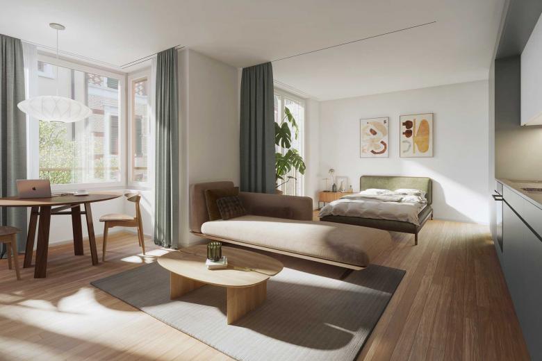Der Ersatzneubau an der Malzstrasse füllt, in Synergie mit dem Nachbargebäude, die städtebauliche Lücke und komplettiert den bestehenden Blockrand. Das fünfgeschossige Haus mit Dach befindet sich in der Quartiererhaltungszone. Mit dem klassischen und gleichzeitig zeitgemässen architektonischen Ausdruck, der filigranen Gestaltung den strassenseitigen Erker und der Ausbildung der beiden Dachgeschosse, fügt es sich harmonisch in das Quartier Alt-Wiedikon ein. Der optimierte 5-Spänner mit 21 Microappartements, 2 Maisonette-Dachwohnungen mit eigener Dachterrasse und 2 Erdgeschosswohnungen.