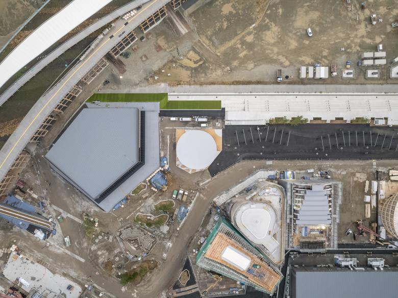 様々な人間の都合で不要となった「困った木」を日本全国から収集し、柱に用いたサテライトスタジオ東には、テレビ局の放送スタジオが3つ入っている。いろんな種類の木が縦に積み重ねられ、円盤状の屋根を支える。