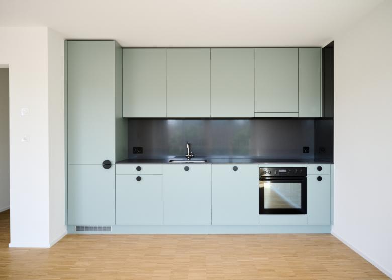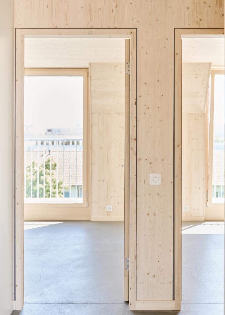 Im Inneren wurden die bestehenden Wohnungen in ihrer kleinteiligen Struktur belassen, jedoch durch gezielte Eingriffe wie zusammengelegte Steigzonen, grosszügigere Raumorganisation, Garderobenbereiche und Waschtürme deutlich aufgewertet.