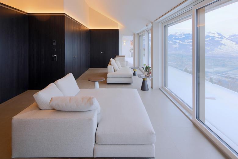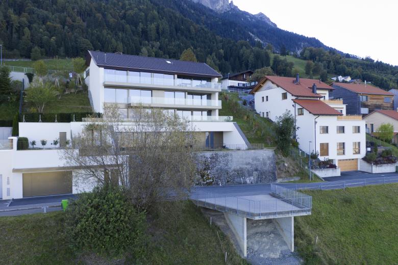 Der Neubau auf der Egerta in Planken liegt auf einmaliger Lage mit unverbaubarem Panorama Blick über das Rheintal und die Schweizer Bergwelt.