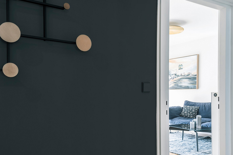 Die von Grund auf neu gestaltete Wohnung befindet sich in einem von Sep Ruf im Jahr 1952 realisierten Wohnhaus, das heute als Exempel der lichten Offenheit der Nachkriegsmoderne gilt. Als Neuinterpretation einer Wohnung dieser Zeit wurde das Zuhause einer vierköpfigen Familie von Arnold / Werner mit einer Mixtur aus Möbeln der 1950er-Jahre und zeitgenössischen Objekten ausgestattet. Die Wandgestaltung in hellen Rot- und Türkistönen basiert auf den 1959 von Le Corbusier entwickelten Farbklaviaturen, mit denen auch die farbigen Schalterklassiker LS 990 von Jung harmonieren. Zusammen mit dem Eichenparkett entstehen zurückhaltend elegante Wohnräume, die ganz dem Geist der Entstehungszeit des Gebäudes verschrieben sind.