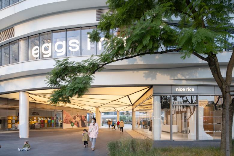 The project adopts a semi-open block concept, featuring staggered building volumes. Four cultural buildings, connected by corridors and other public spaces, enclose over 10,000 square meters of ground area and a 4-story vertical space. These interconnected spaces form a cohesive, organic whole. By incorporating the cycling theme, Various Associates turned the original site’s limitations into features, focusing the renovation budget on fundamental forms to create a distinctive, growing commercial space.