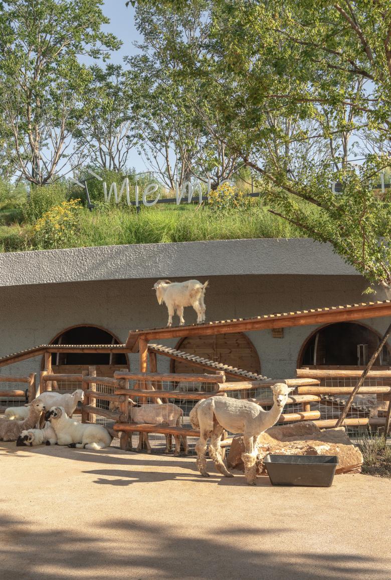 Open paddocks, sand pits, timber frameworks, and shaded structures create diverse environments for alpacas, deer, and other animals. The design balances safety with close, interactive experiences, fostering emotional connections between children and animals.