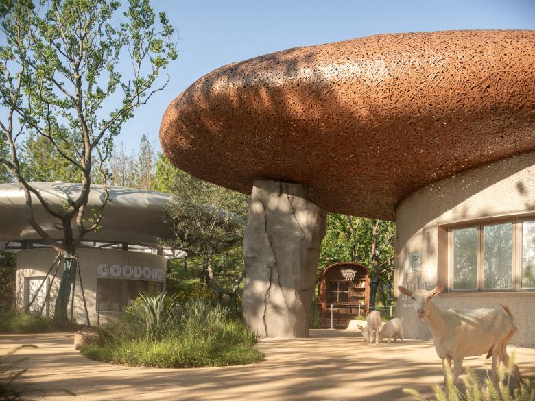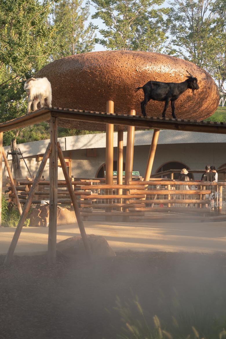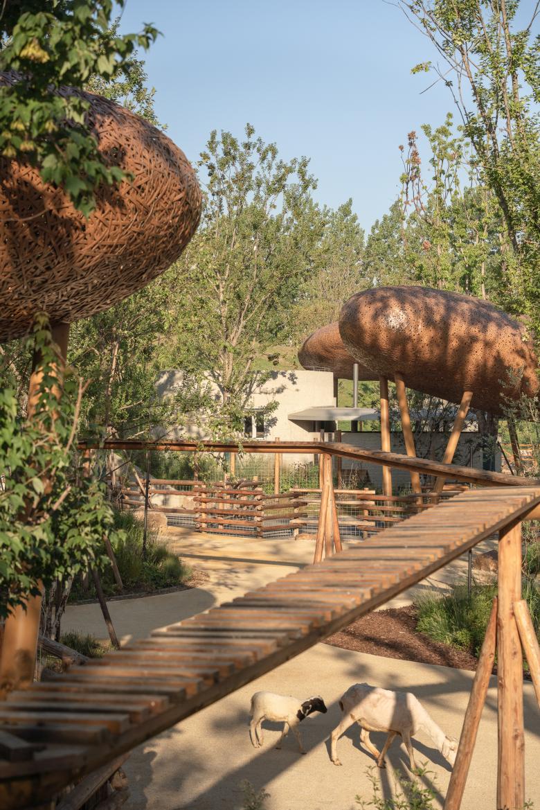 The farm’s circular layout connects animal enclosures, a creative workshop, retail and dining that balances immersive experience with operational efficiency. New structures are embedded into the landscape, creating a continuous visual rhythm across the site. Boulder-like architectural volumes gently emerge from misting systems and native vegetation. Semi-submerged animal enclosures with green roofs reduce the buildings’ visual mass, blending the open farm gently into nature.