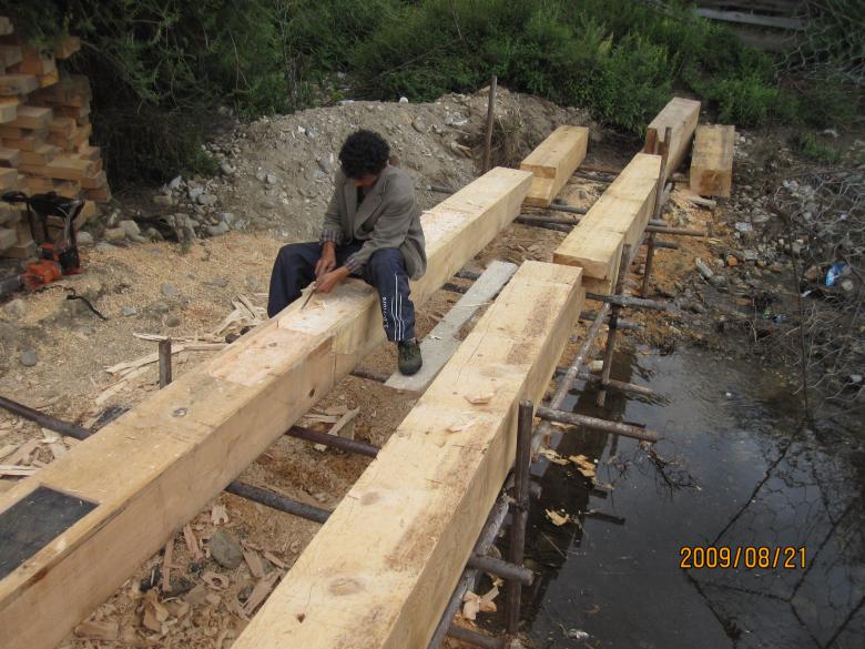 The construction of the building adopted and developed the techniques of the local vernacular. On top of the concrete foundation stands a 60 cm-thick load-bearing stone wall. Most openings have deep recesses. The 40 cm-thick walls on both sides of the openings work as buttresses, increasing the overall structural stability and reducing the interior span. Beams for bigger spans are made from several small logs bonded together. A 15 cm-thick layer of Aga clay forms the waterproof membrane of the roof. Aga clay is a vernacular waterproofing material that also provides heat insulation.