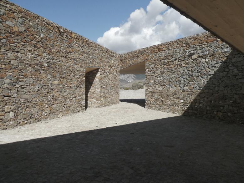 Colour is a crucial element of Tibetan visual culture. After experiments with strong traditional colours – which caused issues for religious local people –the stone walls were painted neutral white, which enhances the geometric spatial composition.