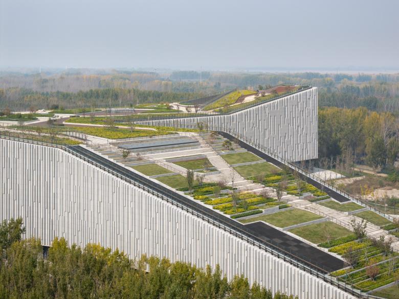 Das neue Museum bildet das Herzstück des „Yellow River National Cultural Park“ und verknüpft die angrenzenden Grünräume zu einer Einheit. Stromlinienförmig erhebt sich das Gebäude aus der hügeligen Landschaft am Flussufer. Als Fortsetzung des öffentlichen Parks führt die grüne Dachlandschaft zu einer 40 Meter hohen Aussichtsplattform mit Blick über den Gelben Fluss im Norden und die Stadt Zhengzhou im Süden. Sie bietet Bereiche für Picknick, Freilufttheater und Ausstellungen. Entlang geschwungener Wege können Besucherinnen und Besucher auf dem Dach die charakteristischen Landschaftsräume des Stroms mit ihren typischen Vegetationen erleben.