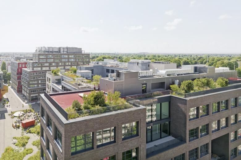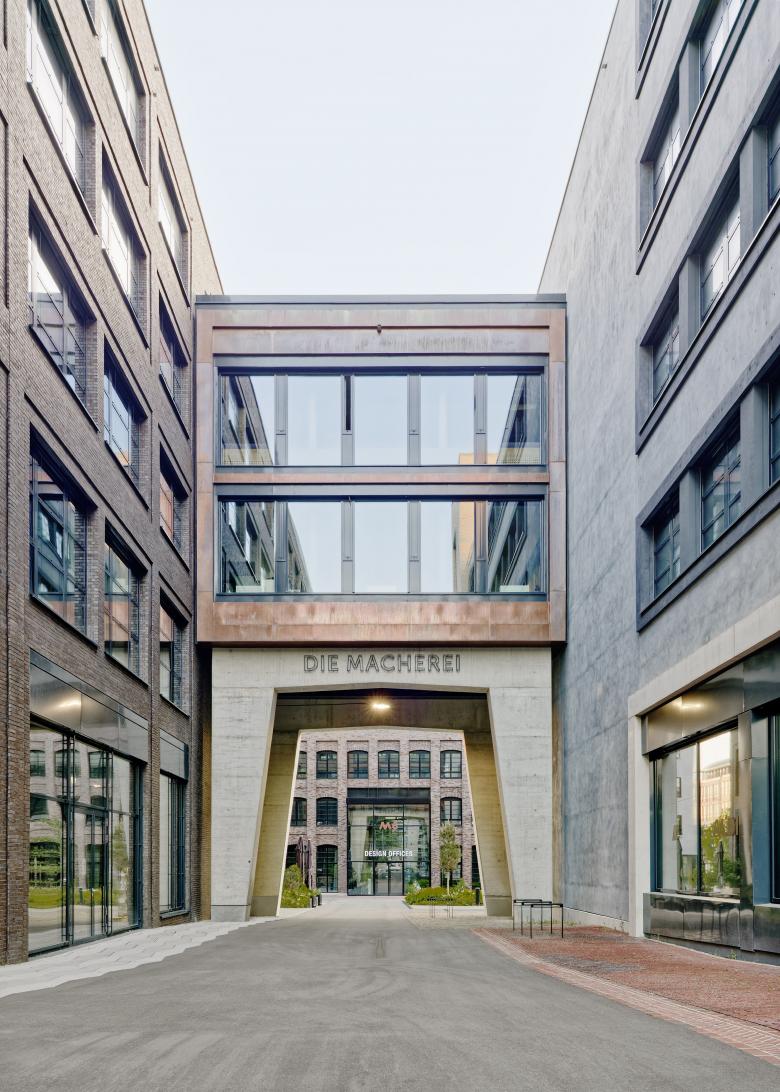 Auf dem ehemaligen Areal des Pharmakonzerns Temmler im Münchner Stadtteil Berg am Laim gestalteten Hollwich Kushner aus New York, Ochs Schmidhuber Architekten aus München und holger meyer architektur das urbane Büro- und Gewerbequartier ›Die Macherei‹. Eine gemeinsame Architektursprache, geprägt von rauen Materialien, Industrial Style und markanten Silhouetten, erinnert an die ehemals im Stadtteil angesiedelten Ziegeleien und verbindet zugleich optisch die Vielfalt der Einzelgebäude auf dem 26.400 m² großen Gelände. Die zwei von holger meyer architektur geplanten Gebäude mit Loftbüros und Einzelhandelsflächen erhalten jeweils eine eigenständige gestalterische Handschrift, angelehnt an die Loft- und Industriebauten der Gründerzeit. Eine charmante Verbindung der beiden Häuser schafft der auf Stützen stehende, industriell anmutende Baukörper ›Nachtkastl‹.