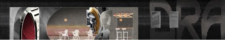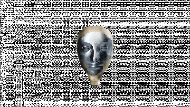 装置由不同形态的多张面具构成:正面横向展开的面具背后是另一张充满雕塑感的面庞,象征未知与无限;侧面造型则遵循简明的几何推演规律,使其更具希腊古典韵味。