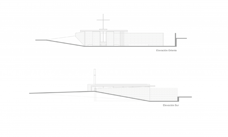 El altar, que históricamente se posiciona al final de la procesión, se reubica esta vez al centro geométrico del proyecto, al pie de la cruz atrial, para reforzar el carácter místico de la complementariedad volumétrica y convertir así a la cruz en el culmen y el origen de todas las dualidades.