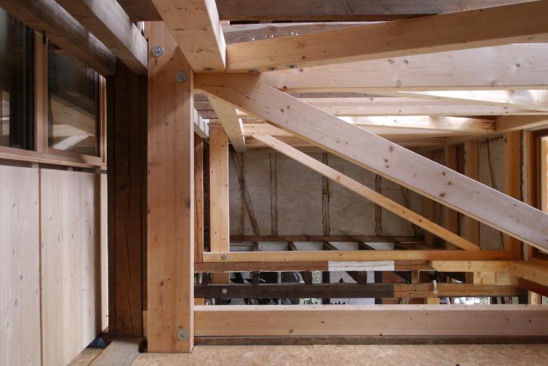 Die Reduktion beheizter Räume auf ein Minimum stellt eine einergieeffiziente und ressourcenschonende Lösung dar, die gezielt auf die Bedürfnisse der Bauherrschaft eingeht. Die vorhandenen Materialen Sandstein, Mauerwerk, und sichtbares Holzfachwerk prägen weiterhin den Innenraum. Neue raumbildende und statisch notwendige Bauteile bestehen aus Holz.