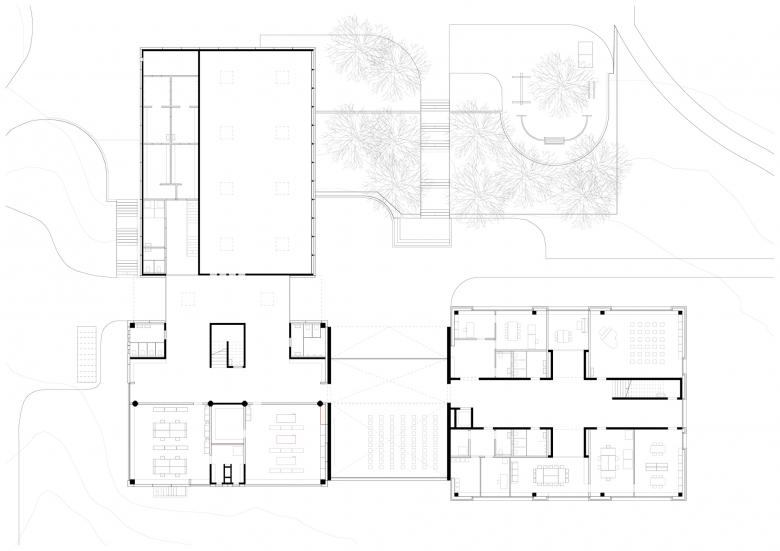 Die Schulanlage Zelgli befindet sich an zentraler Lage in Killwangen. In den 70er Jahren wurde die Schulanlage erstellt. Die Gebäudekörper fügen sich als abgetreppte Volumen gut in den Hang ein. Die beiden Trakte werden über eine mittige Erschliessungszone erreicht. Diese 1-geschossige Erschliessungszone fungiert als «Gelenk» der Anlage und tritt als beidseitig vollflächig verglaster Durchschussraum in Erscheinung. Die nun geforderte Erweiterung nimmt die Qualitäten und Charakteristiken der bestehenden Anlage auf und denkt sie weiter: Das neue Volumen wird östlich an den bestehenden Schulhaustrakt angebaut. Analog zur bestehenden Erschliessungszone wird auch hier mit einem eingeschossigen «Gelenk» an die Anlage angebaut. Hier werden die Aula und der gedeckte Pausenbereich untergebracht und können sowohl von den bestehenden Unterrichtsbereichen, wie auch vom projektierten Anbau direkt erreicht werden. Der neue Schultrakt tritt als zweigeschossiger Gebäudekörper in Erscheinung. Die neuen Unterrichtsräume im 1.Obergeschoss gliedern sich um eine innere Halle, die über 2 Lichthöfe gut belichtet wird. Im Erdgeschoss befinden sich die Räume für die Lehrerschaft. Über die Lichthöfe werden die beiden Ebenen visuell miteinander verbunden.