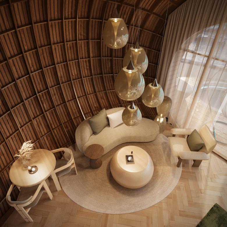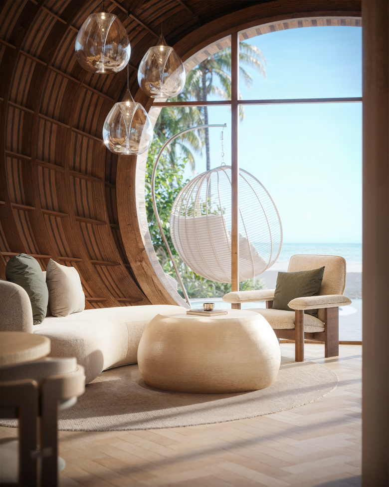 Inspired by the organic beauty of the natural world, the lodge features soft, curvilinear shapes