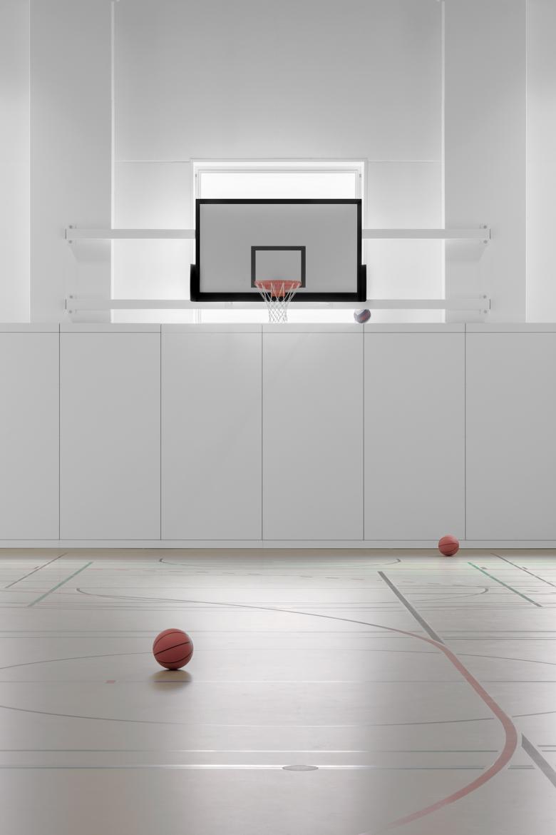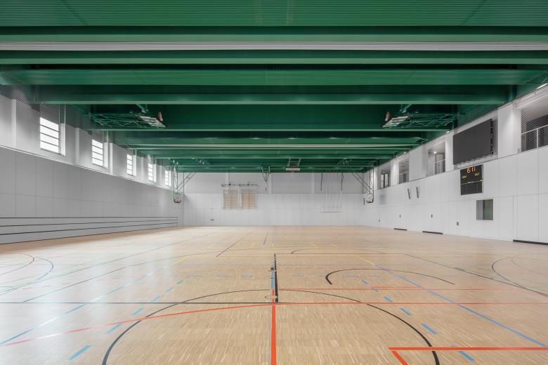 Die gestapelten Sporthallen sind ein zentraler Bestandteil des Projekts. Die untere Dreifachhalle ist als erste paralympische Wettkampfstätte der Stadt konzipiert und u.a. für Sportarten wie Rollstuhlbasketball, Sitzvolleyball und Blindenfußball ausgelegt.