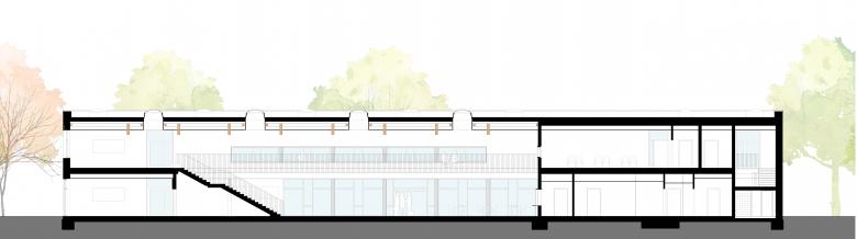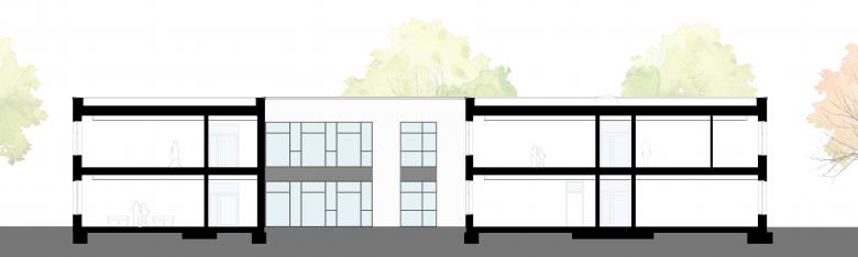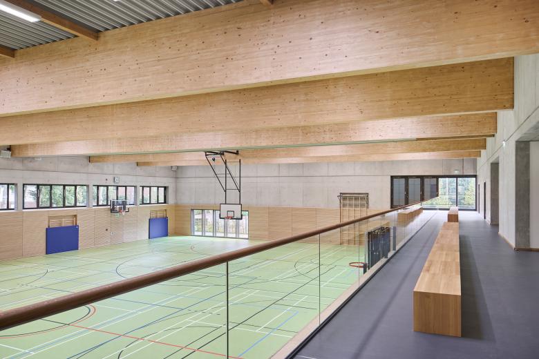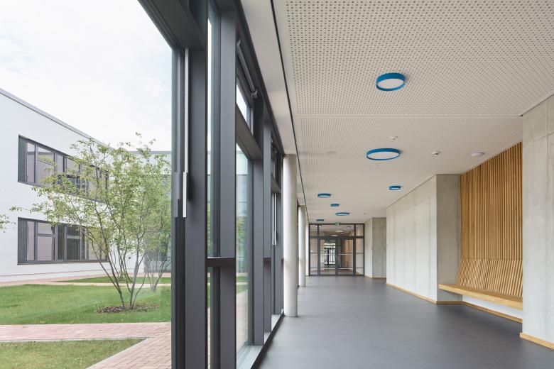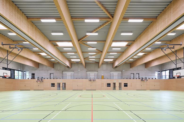 Wo bisher die Schülerinnen und Schüler des Gymnasiums auf dem Sportplatz zu Höchstleistungen angespornt wurden, entstanden drei Neubauten: Ein gemeinsamer Fachklassentrakt, die neu angesiedelte Gemeinschaftsschule und eine Sporthalle am Kopf des Grundstücks. Trotz der räumlichen Zusammenlegung bleibt die Eigenständigkeit beider Schulen durch eine konsequente funktionale Trennung erhalten. Dank lichtdurchfluteter Fach- und Klassenräume und multifunktionaler Erschließungszonen mit individuellem Mobiliar, werden hier nicht mehr ausschließlich sportliche Bestleistungen erbracht, sondern ebenso gestalterische oder mathematische. Es werden nicht nur Schulfeste in der großzügigen Halle der Gemeinschaftsschule stattfinden können oder Konzerte in der bestehenden Aula, sondern auch öffentliche Veranstaltungen der Stadt in der bis zu 1.000 Gäste fassenden Sporthalle. Das gesamte städtische Umfeld – vom Stadtpark bis zum Tennisplatz – erhält durch den Schulcampus neue Impulse!