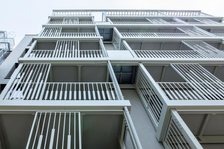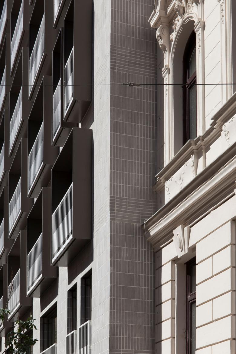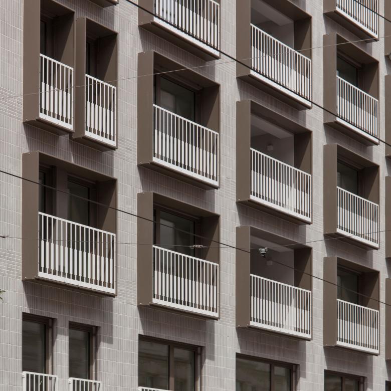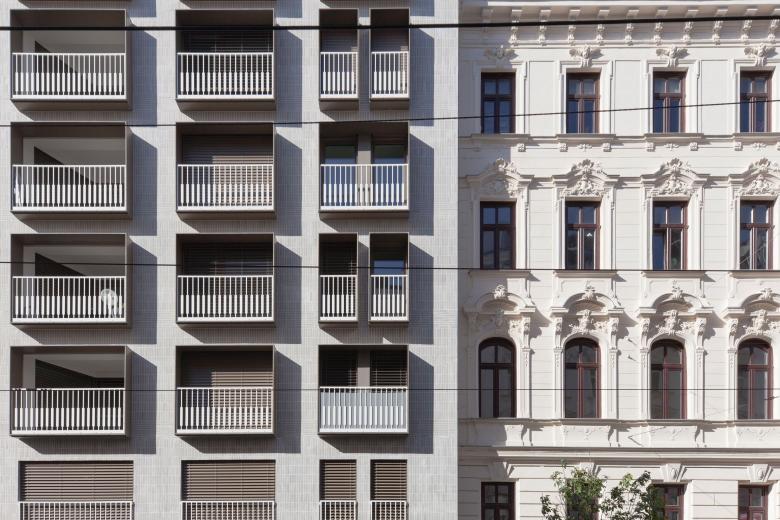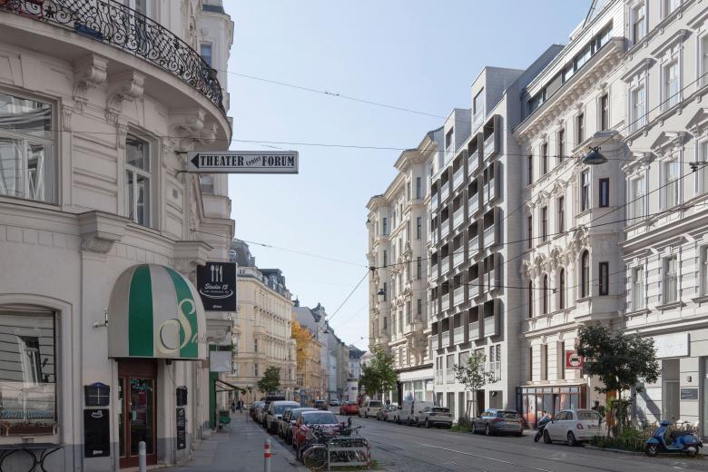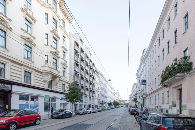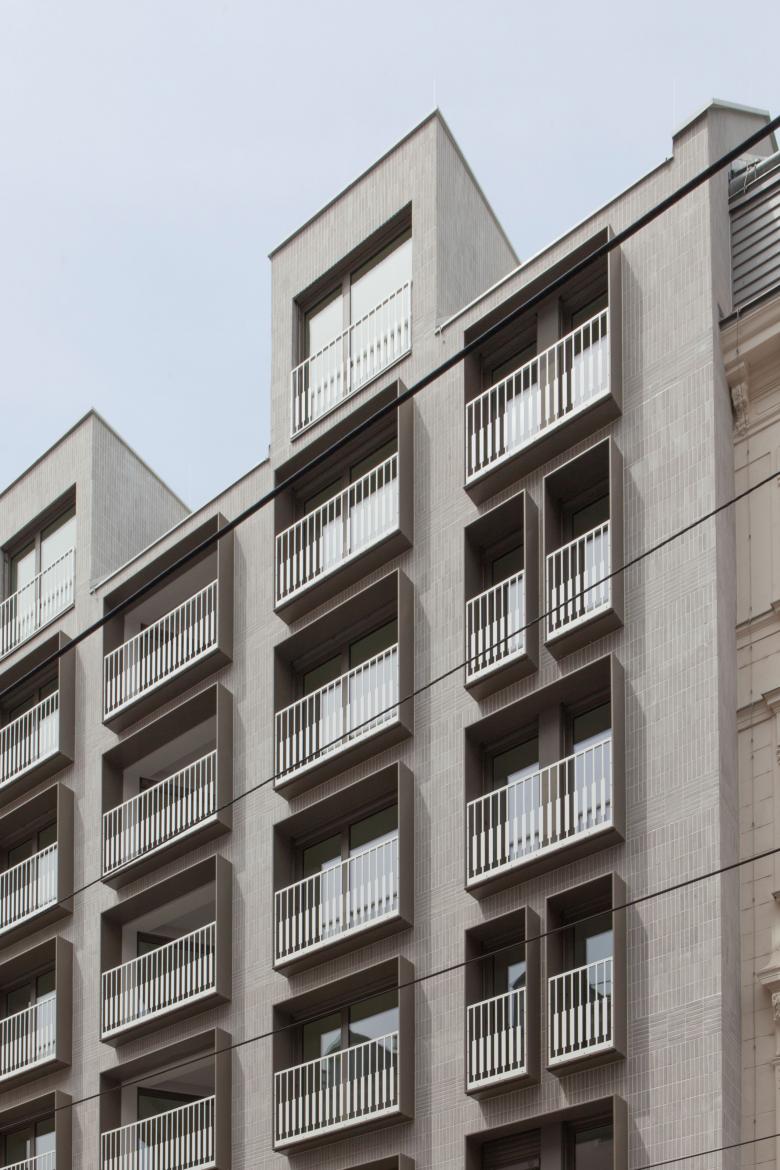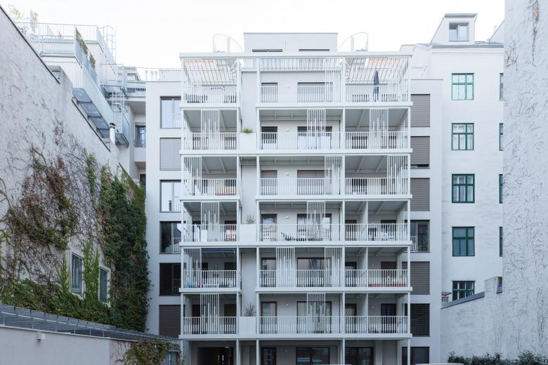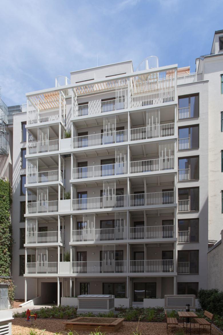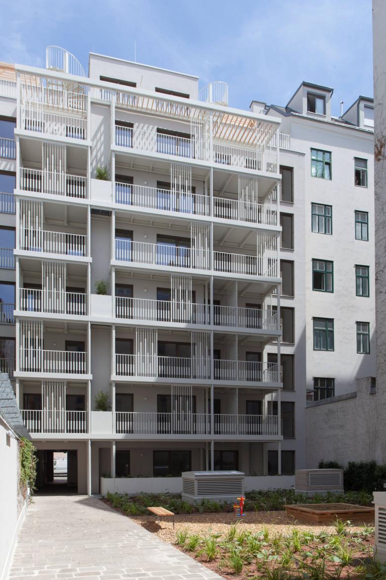 Es ist uns mit diesem Projekt gelungen, unter erschwerten Umständen nicht nur Bestehendes zu erhalten, sondern zu verbessern und aufzuwerten und den Anforderungen der Gegenwart gerecht zu werden. Die meisten der 24 Wohnungen öffnen sich nach beiden Hausseiten hin, dies ermöglicht eine Durchlüftung und bietet zusätzlichen Außenraum in Form von Balkonen und kleinen Terrassen. In Richtung des nordseitig orientierten Hofes wurde auf große Fensterflächen gesetzt. Durch den großzügigen Innenhof, der mit Spielgeräten und Sandkiste ausgestattet wurde, gelangt man in das bestehende Hinterhaus.