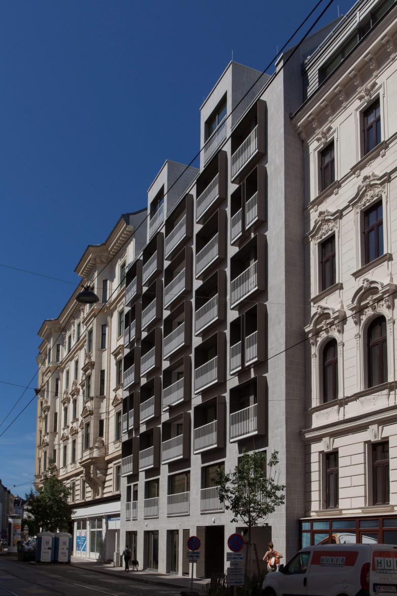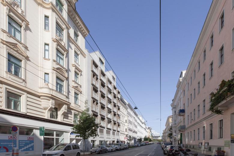 Bei der Gestaltung der straßenseitigen Fassade wurde besondere Rücksicht auf das Erscheinungsbild gelegt, die Optik der Nachbargebäude wurde in Farbe und Materialität berücksichtigt. Das alte Satteldach des Hauses wurde abgenommen. Nun befinden sich im Dachgeschoss zwei hochwertige Wohnungen mit zweistöckiger Terrasse, die einen Blick in alle Richtungen über Wien bietet. Auch im Inneren des Hauses wurde auf höchste Qualität geachtet.