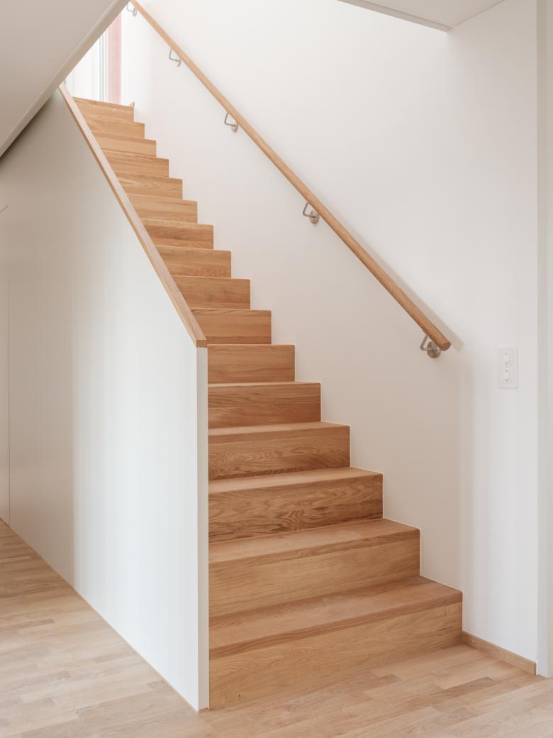 Als willkommene Erweiterung des Wohnraums dient ein neu angebauter Balkonturm mit Blick ins Grüne und über die Siedlung Schatzacker. Die grün-weiss gestreifte Markise sorgt dabei für sommerliches Flair und schützt vor Sonne und Blicken.