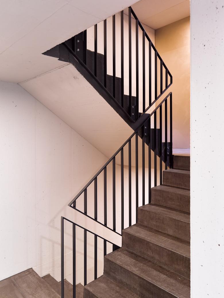 Die Fassade besticht durch ein rhythmisches Spiel von Öffnungen und eine subtile Materialwahl. Natürliche Materialien wie Holz und Stein verleihen dem Bau eine warme Ausstrahlung und lassen ihn auf würdevolle Weise altern.