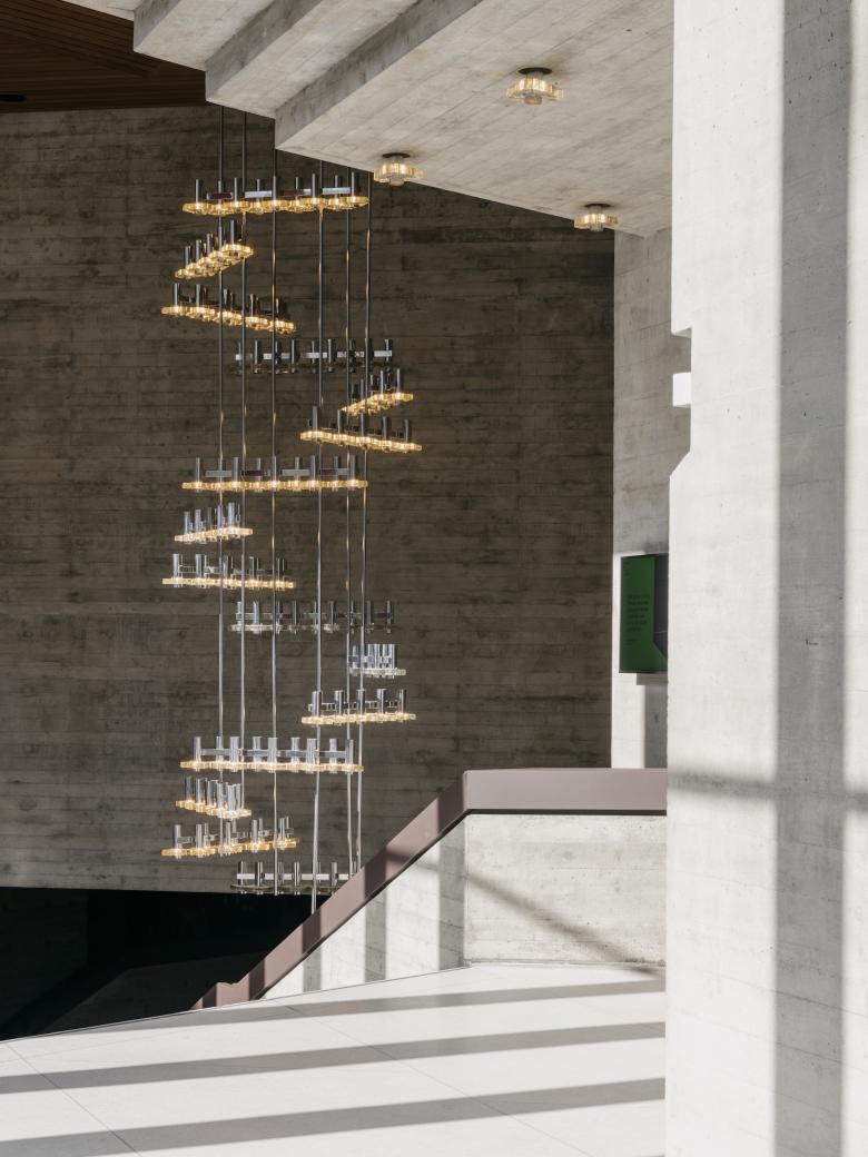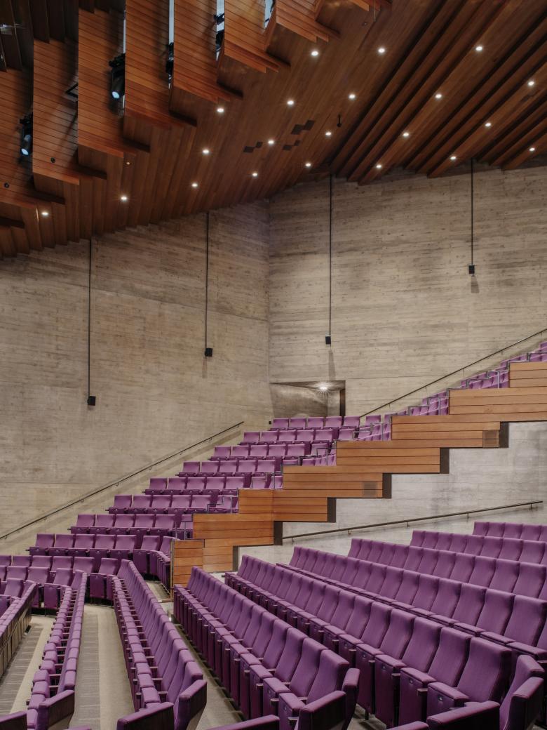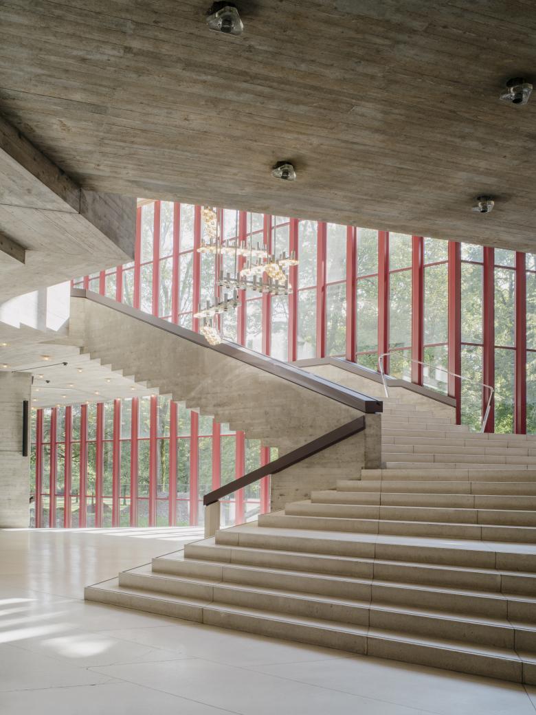 Nach einer fünfzigjährigen Nutzungsphase mit unterschiedlichen Eingriffen, wurde eine Gesamterneuerung notwendig, um den Betrieb des Theaters St.Gallen für weitere vierzig Jahre zu sichern. Der Instandsetzungsauftrag umfasste den Ersatz der haustechnischen Anlagen, die Behebung der baulichen Mängel, insbesondere der Fassaden. Die strategische Planung machte jedoch auch deutlich, dass der Theaterbetrieb ohne Ergänzung diverser, fehlender Räume nicht für die Zukunft gerüstet ist. Damit das Neubauvolumen möglichst klein gehalten werden konnte, wurde der bestehende Schutzraum im Untergeschoss aufgehoben und eine unterirdische Erweiterung gegen Westen, analog der Schreinerei, realisiert. Für den zusätzlich benötigten Raumbedarf galt die Bedingung, dass sämtliche Räume einen direkten Zugang zur Hinterbühne aufweisen müssen (Garderoben/Requisiten/Bühnenmeister/Maske). Um diese Bedingung erfüllen zu können, kam für die Erweiterung des Volumens nur der nordwestliche Teil des Theaters im Bereich des Haupteingangs in Frage. In der Folge wurde der Hauptzugang neu interpretiert und die Beziehung zur Tonhalle gestärkt