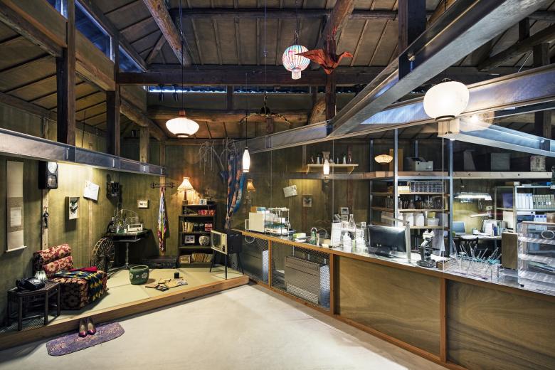 私たちがここで試みたのは、様々な与条件から登場する要素を整理したり減らしたりせず、併存させ拮抗させることです。風景にとけ込む普通の古民家であり、科学を象徴するラボであり、作品を設置する展示空間であり、神話と接続する神社的なものであることをポジティブに捉え、沢山の意味や佇まいの重ね合わせを行いました。これはスプツニ子!の作品が持つ多義性にも共鳴します。