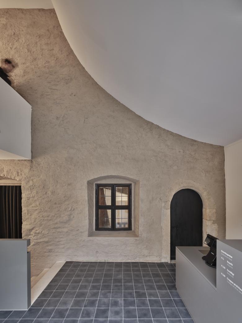 Die Hanglage sowie Teile des denkmalgeschützten Bestandskellers in diesem Bereich sorgten für besonders schwierige topografische Bedingungen für die Errichtung des Neubaus.