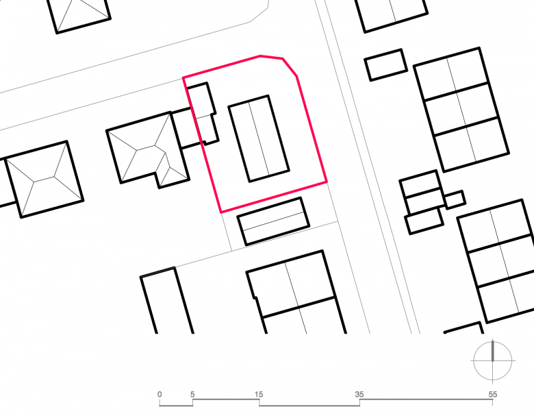 Bei der Ausrichtung des Baukörpers spielte vor allem die Erhaltung des vorhanden Baumbestandes eine wichtige Rolle.