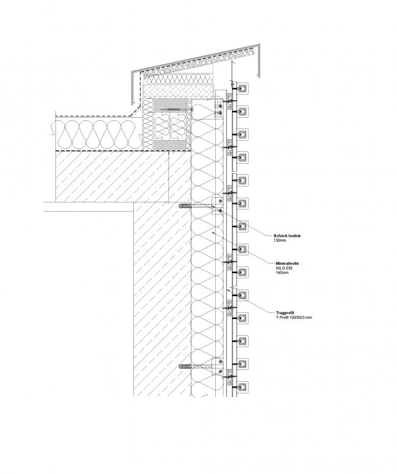 Der Architekt wandte sich daher an die Experten von Schöck, die die Befestigung der VHF am ZDD mit dem Fassadenanker Schöck Isolink Typ F erarbeiteten. Damit konnten nicht nur die energetischen Anforderungen sicher erreicht werden: Durch den Einsatz von Isolink ließ sich darüber hinaus auch der Wandaufbau deutlich reduzieren.