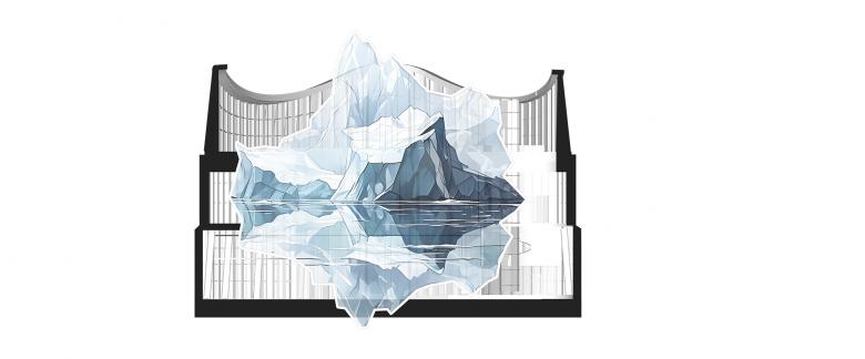 The text in the brief needed to be translated into spatial form. Scientists who study continental ice sheet glaciology noticed global climate warming by monitoring the Greenland ice sheet over the years. Thus, the glacier became a precise indicator of global warming.