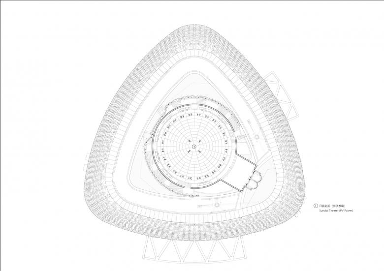 A staircase from the 57th floor enters the iceberg, leading up to the 58th floor—the summit. Here lies a giant sundial etched with the 24 solar terms, made from photovoltaic panels, serving as a platform for helicopter hover rescue and as a performance stage. It shows how technology can be translated into dramatic spatial experience. This was the final step to complete the iceberg. Thus, we finally built the iceberg atop the Xintiandi T1 Tower. Standing at the center of the sundial, feeling the breeze and the warmth of the sun, you feel connected to the world. Everything falls into place.