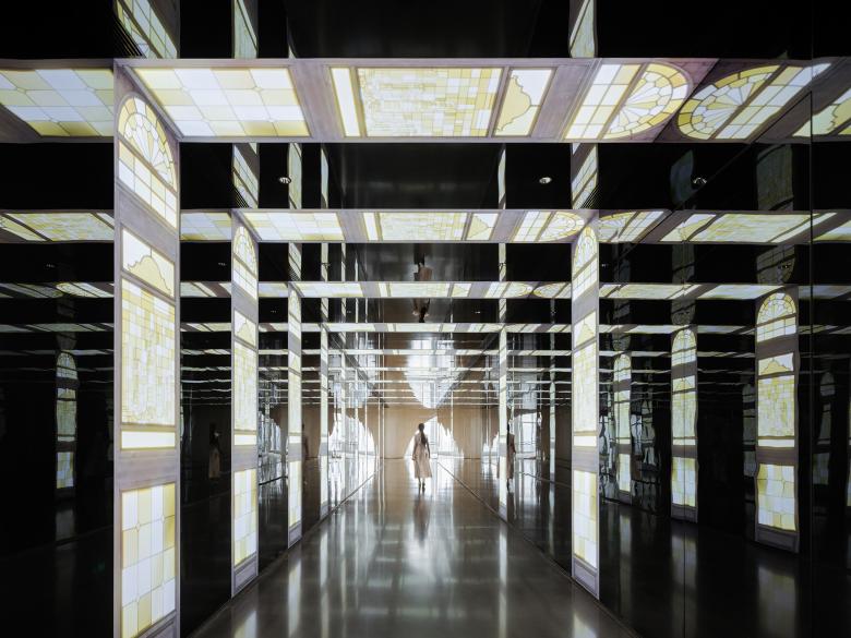 During my final walk-through, I was standing at the center of the large stage and beneath the snowflake-patterned ceiling, facing the city of Shanghai, when the LED columns on the interior façade suddenly lighted up. The splendid light reflected on the window intertwined with the night view of Shanghai, creating a scene of magical realism.