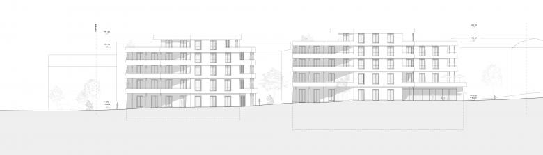 Die Verlegung des Quartierladens in den südlichen Gebäudekomplex erlaubt näher an der nördlichen Grenze zu bauen. Die Lücke zum Hauptgebäude der Raiffeisen wird minimiert und die Kontinuität der Strassenfront verstärkt.