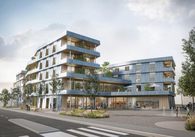 Die drei geplanten Hauptvolumen fügen sich harmonisch in die bestehende Körnung ein und sichern gleichzeitig die Durchlässigkeit der Grünräume.