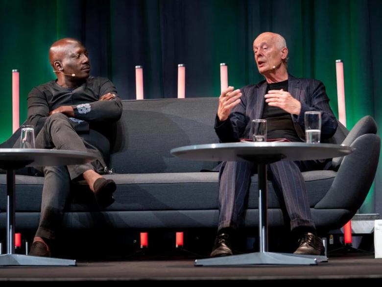Kunle Adeyemi (NLÉ) and Hans Joachim Schellnhuber (founder of Bauhaus Earth) (Photo: UIA World Congress of Architects 2023)