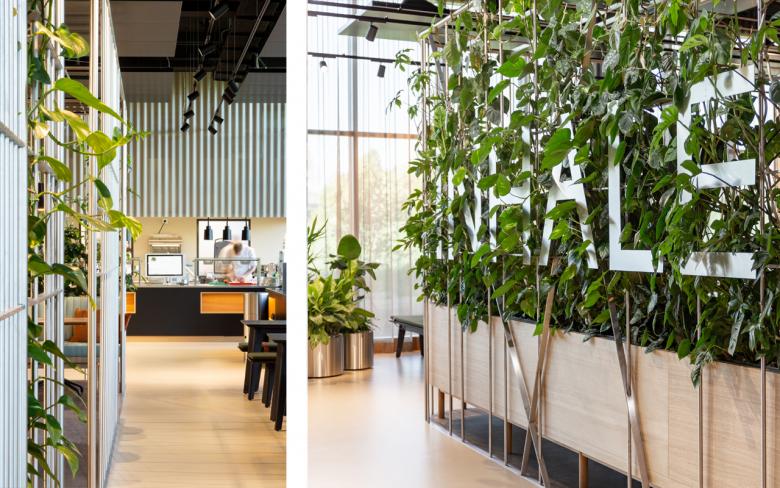 Im neuen Spitzensportzentrum OYM in Cham werden Sportler zukünftig verknüpft mit der Wissenschaft ihre Höchstleistungen an die Weltspitze treiben können. Um einen Ausgleichsbereich im Athletikzentrum zu haben, wird die Caféteria in wohnlichem Ambiente mit unterschiedlichen Sitzangeboten für jedes Bedürfnis gestaltet. Die Chromstahl-Laube gliedert als „Raum im Raum Konzept“ die grosse Caféteria in Essens- und Lounge-Bereich. Im Raumkonzept werden die Wörter INHALE und EXHALE sichtbar als Thema verwendet - ein sehr wichtiger Prozess des menschlichen Körpers, welcher beim Sport wie auch beim Entspannen zentral ist. Pflanzen im Raum erhöhen den Sauerstoffgehalt, welcher wichtig für die Regeneration der Sportler ist. Sie wachsen an dem Raumtrenner in die Höhe und widerspiegeln den Fortschritt der Athleten. Möbel mit Stoffbezug, Vorhänge und das warme Farb-/Materialkonzept machen den hohen Raum wohnlich und komfortabel zum Verweilen.