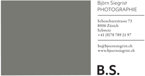 Björn Siegrist ist ein Schweizer Kunst- und Architekturfotograf und lebt und arbeitet in Zürich. Seine freien Arbeiten waren bisher in mehreren Einzelausstellungen zu sehen.