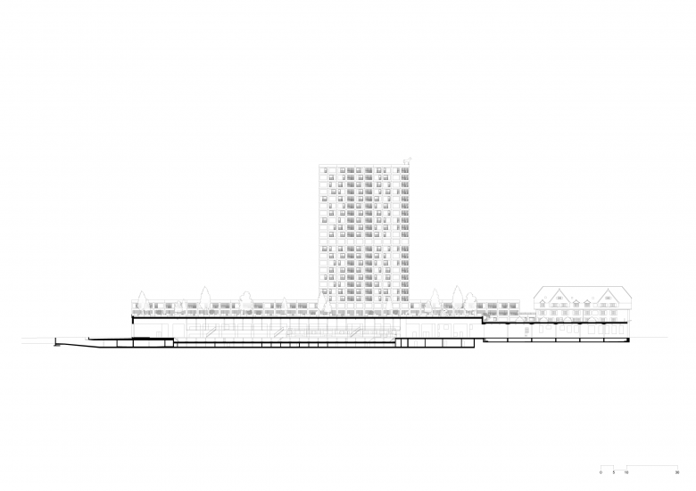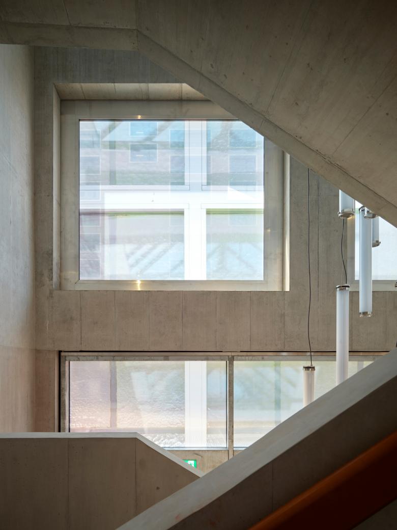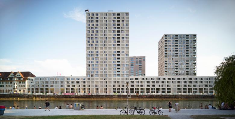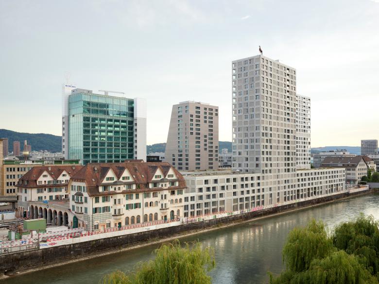 Zwei Hochhäuser auf einem 4-geschossigen Sockel formen zusammen mit dem Swisscom-Tower und den Escher Terrassen ein neues urbanes Ensemble als Auftakt zum Stadtquartier Zürich-West. Die Basis bildet eine moderne Depothalle für insgesamt 25 Tramkompositionen, die mit peripher angeordneten Atelier-, Gewerbe- und Dienstleistungsnutzungen ergänzt wird. Darüber sind aufden beiden Längsseiten zweigeschossige Townhouses angeordnet. Sie schaffen eine geometrisch-volumetrische Anbindung an die bestehenden denkmalgeschützten Kopfbauten des alten Tramdepots und nehmen die präzis gesetzten rund 70 m hohen Wohntürme auf. Dazwischen entfaltet sich auf der Depothalle ein halböffentlicher und vielseitig nutzbarer begrünter Freiraum. Die neue städtische Siedlung bietet ein vielfältiges Wohnungsangebot für etwa 550 Bewohner:innen.