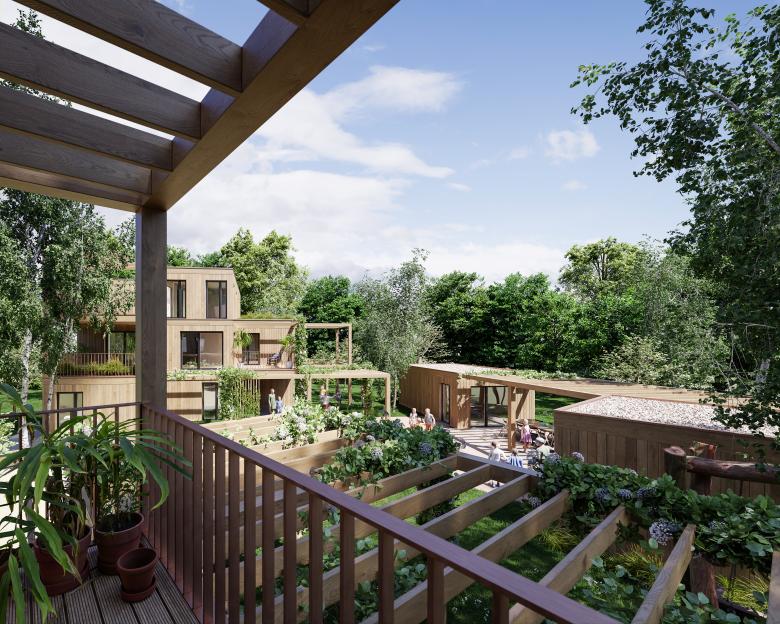 Das entwickelte Holzbaukastensystem reagiert auf die Herausforderungen der Klimakrise. Es erfordert im Lebenszyklus einen geringeren Materialaufwand (Suffizienz), kombiniert materialgerechte Bauweisen mit einem innovativen Energiesystem und vernünftigen Grundrissen (Effizienz), und schafft langlebige, flexible Raumstrukturen sowie Bauteile (Konsistenz).