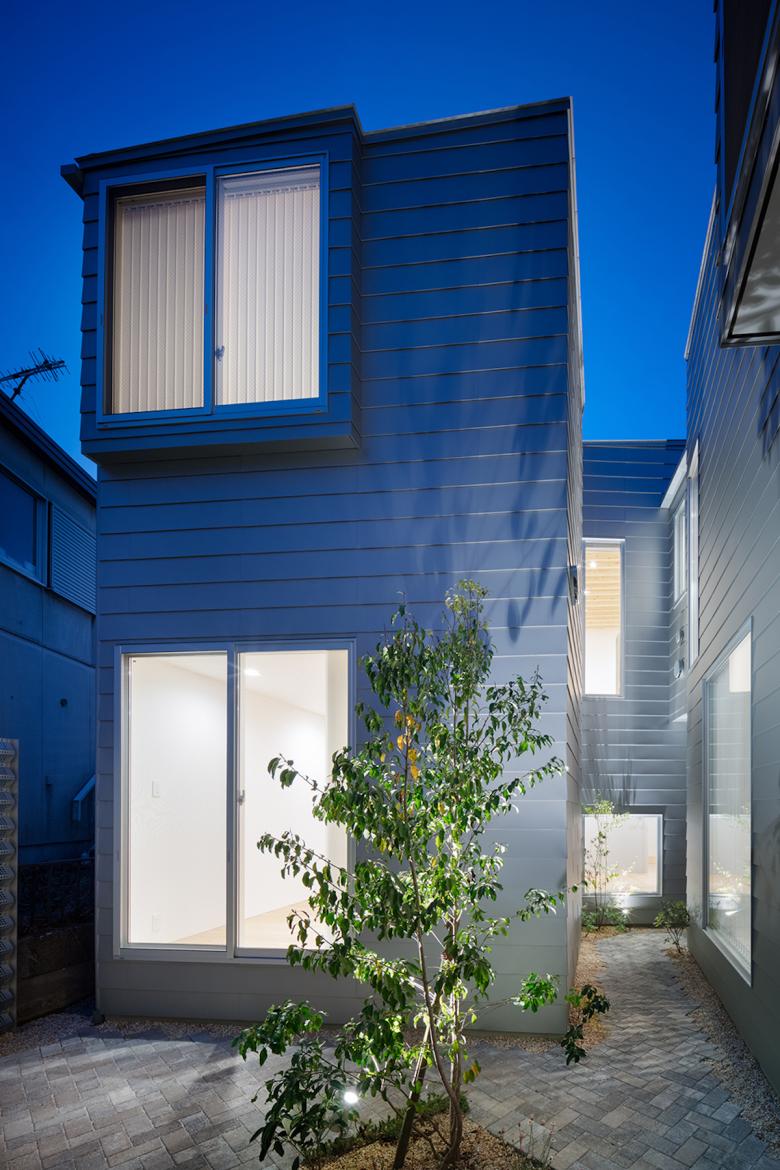この長屋は、壁やオートロックで各々のスペースを分断してプライバシーを保ち、効率よく住戸を並べる集合住宅ではない。住戸が路地や庭に開き様々に関係しながらもそれらの配置や開口の開け方、植栽によって互いに程よい距離を保ち、部分的にはシェアすることで、住み手の住まいとしての意識が住戸の外に広がる状態を目指した。